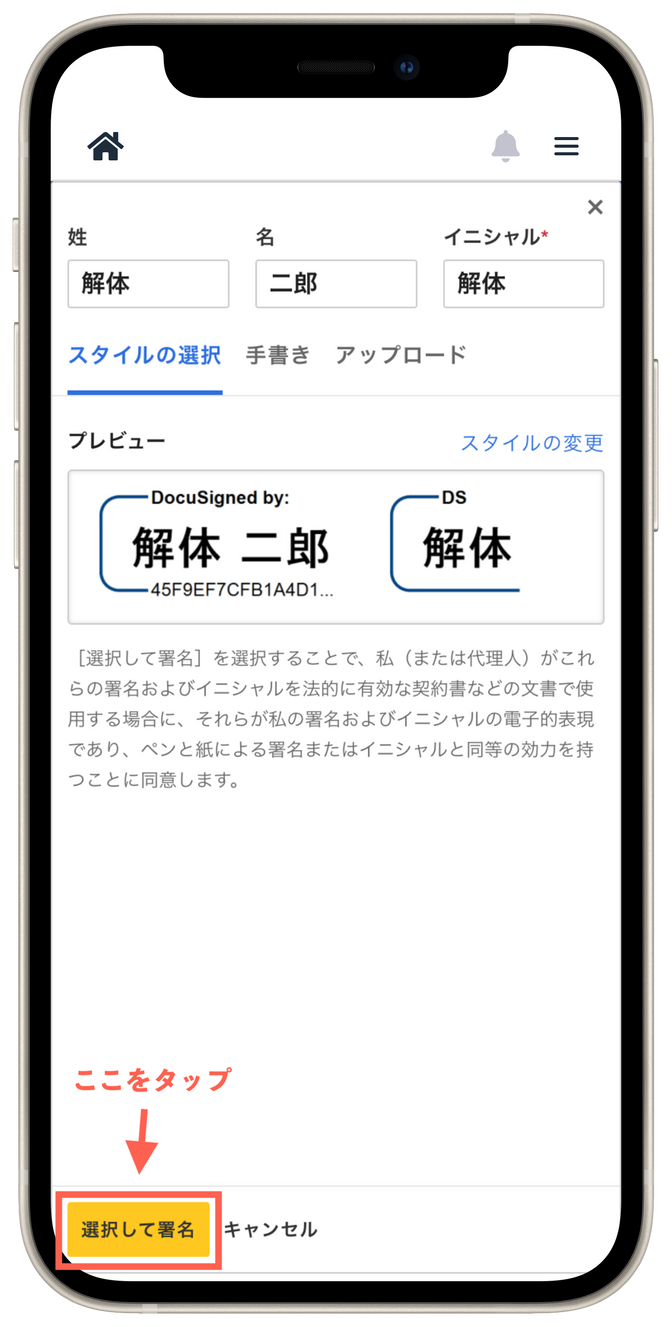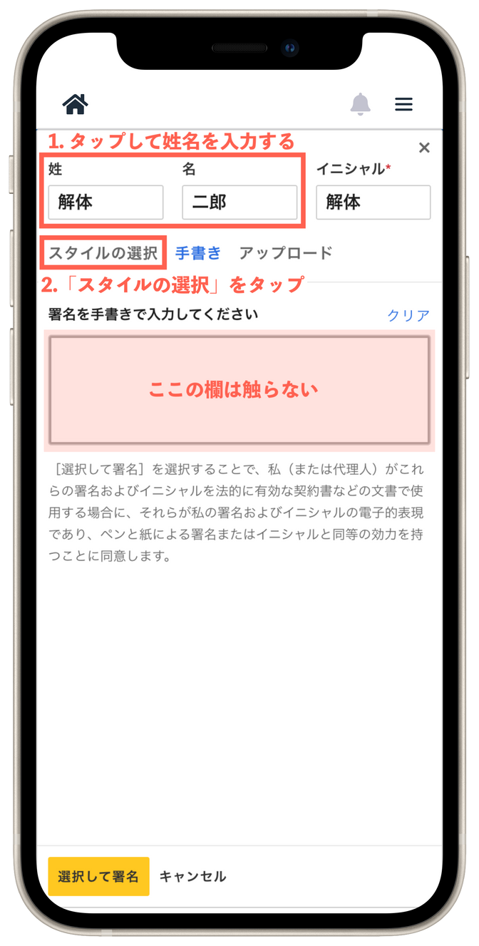 姓名が入力できたら「スタイルの選択」をタップしてください。