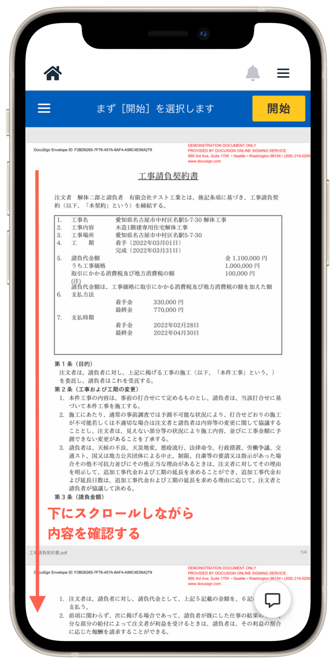 契約書の内容に問題がないことを確認したら署名を開始します。